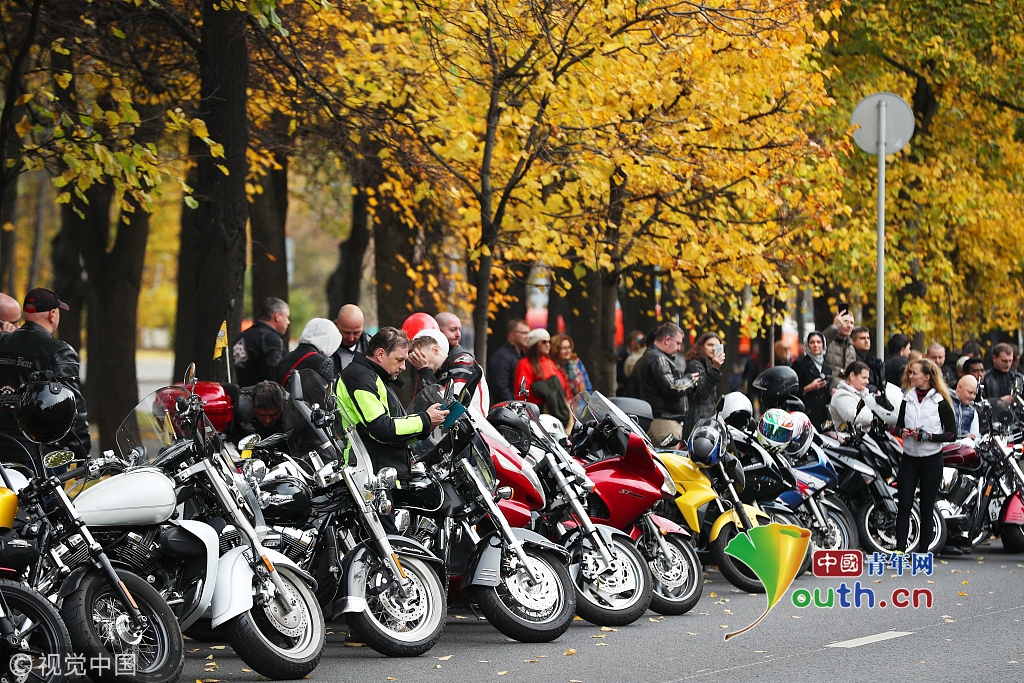 当地时间2018年10月13日,俄罗斯莫斯科,当地举行摩托车游行。