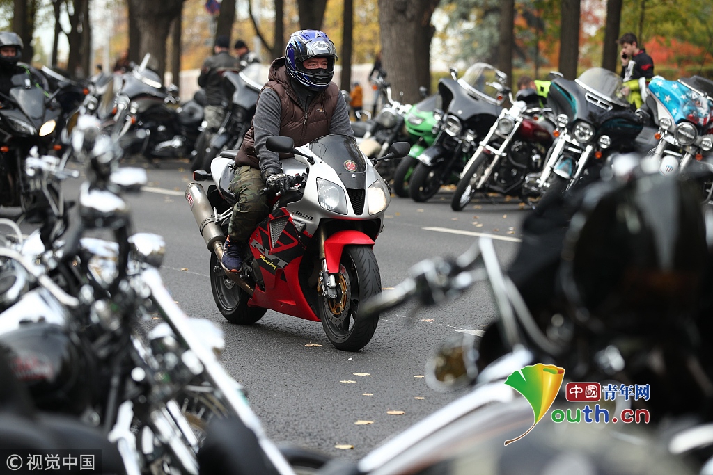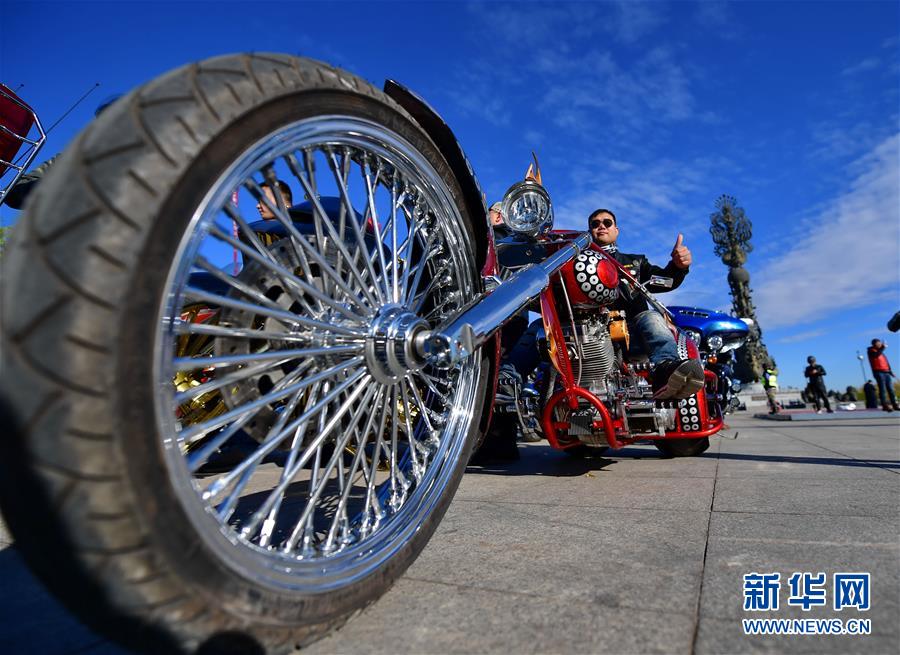 当地时间2018年10月13日,俄罗斯莫斯科,当地举行摩托车游行。