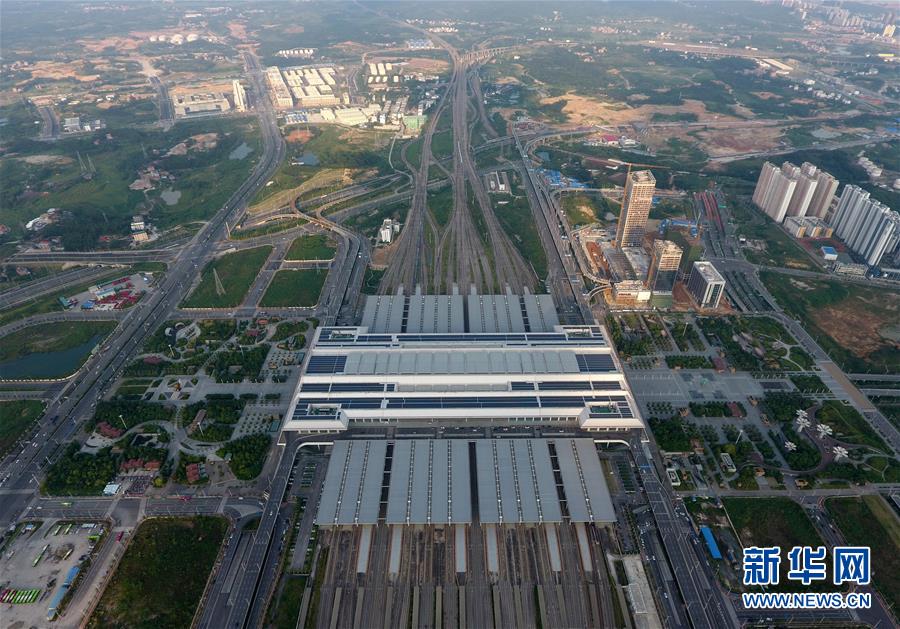 这是“零换乘”立体综合交通枢纽——广西南宁东站(9月4日无人机拍摄)。 广西壮族自治区成立60年来,铁路建设发生翻天覆地的变化。来自中国铁路南宁局集团有限公司的数据显示,1958年广西铁路总里程为1346.3公里,如今广西铁路总里程达5191公里。广西与周边相邻省份间实现动车“公交化”开行。此外,北部湾港—重庆班列、东盟海产品冷链班列、“百色一号”果蔬专列等的开通和运营,强化了铁路供给的针对性和有效性。铁路成为助推广西经济社会快速发展的“大动脉”。 新华社记者陆波岸摄