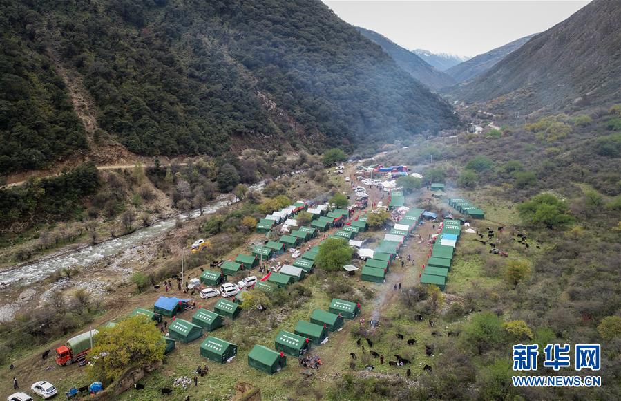 这是西藏昌都市江达县波罗乡一临时过渡安置点(10月14日无人机拍摄)。