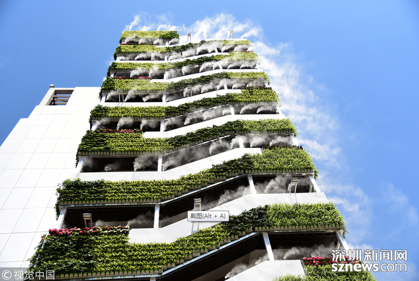 相关链接 10层高楼长满绿植“仙气飘飘” 这座建筑在抖音火了! 深圳新闻网讯 2018年6月10日,西安,高楼外长满绿植,还萦绕着雾气。这段只有6秒的短视频在抖音火了,网友评论这是“第四代住房”,其实这是西安市众创示范街区的一处安装了智能雾森系统的西北最大户外垂直绿化。 夏天能区域降温5℃至10℃ 还可有效抑制PM10 “仙气飘飘”、“西安天气有多热,房子都冒烟了”,这是一段抖音小视频里网友的评论留言。视频中一栋10层高的楼外侧楼梯处挂满了绿植,同时绿植上方还有喷雾。蓝蓝的天空当做背景,引来不少人上前拍照,配着背景音乐的确让人感觉清凉无比。