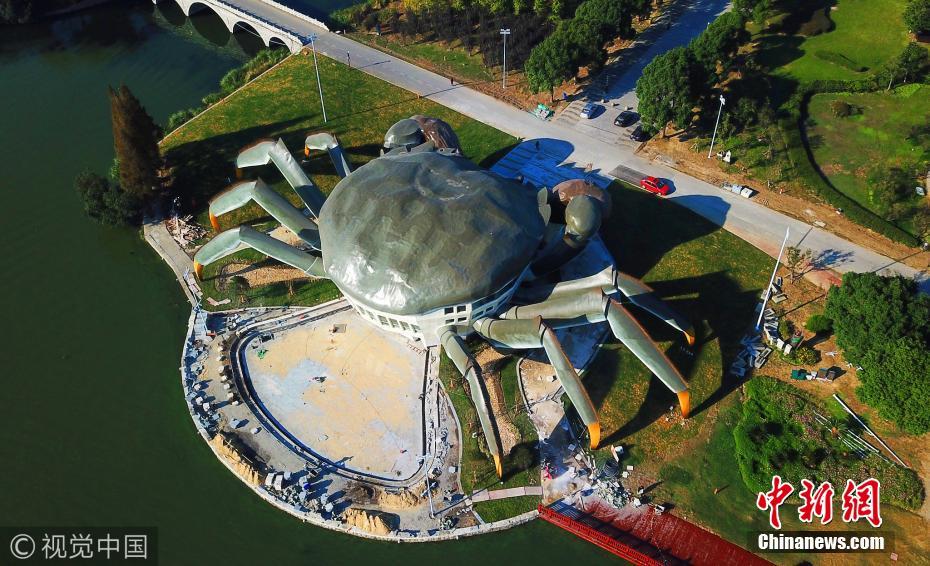 据了解,这是建造中的大闸蟹生态馆,预计未来将在大闸蟹的白肚内容纳三层空间,集休闲、娱乐,以及有关大闸蟹体验于一体的设施。图片来源:视觉中国