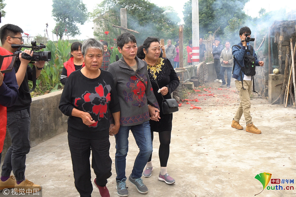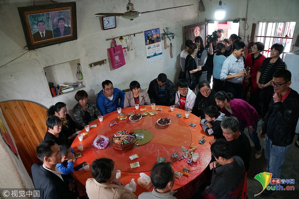 2018年10月14日,浙江嘉兴嘉善县陶庄,二姐何好妹一家挤满了来看热闹的人。图片作者:田建明
