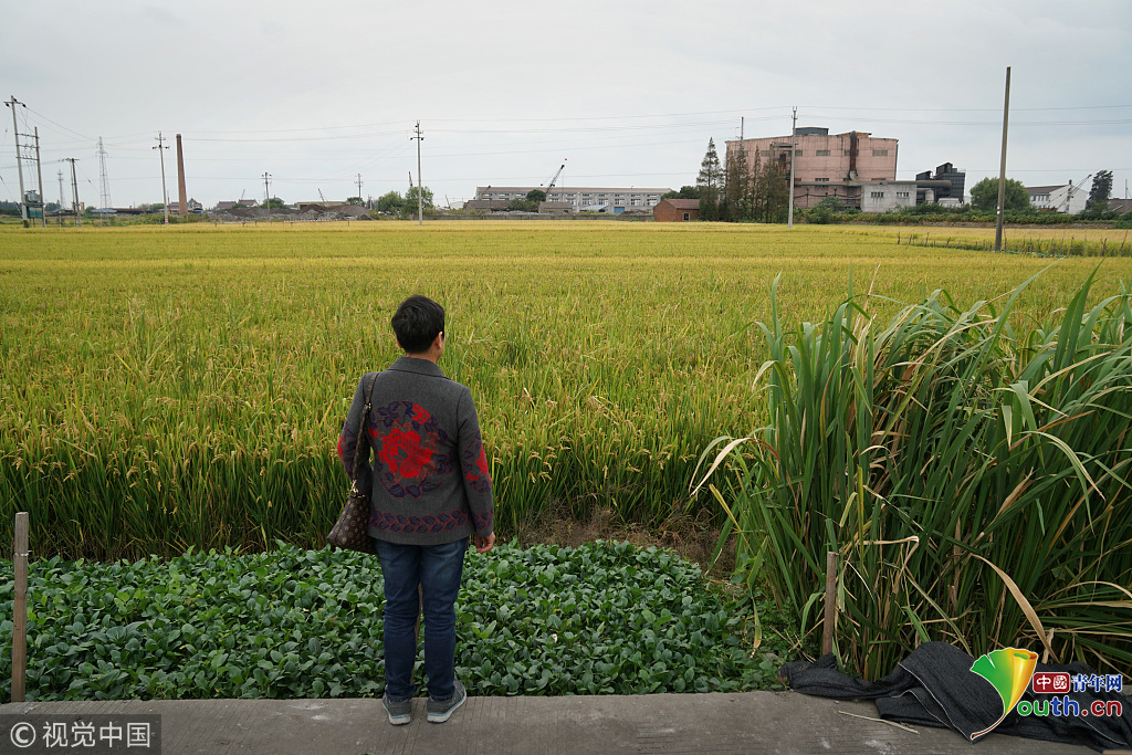 2018年10月14日,浙江嘉兴嘉善县陶庄,张娟芬(何永妹)家的草房子早没有了,原址现在是一个小工厂,周围是农田。垂下的稻穗饱满发黄,等待收割。图片作者:田建明