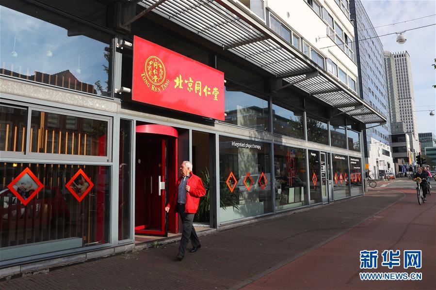 10月15日,在荷兰海牙的唐人街,行人经过一家中医馆。新华社记者郑焕松 摄
