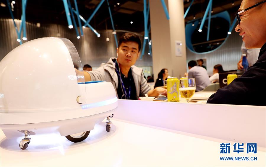 近日,一家由机器人充当送餐服务员的盒马机器人餐厅现身上海国家会展中心,为顾客带来一种用餐新选择。