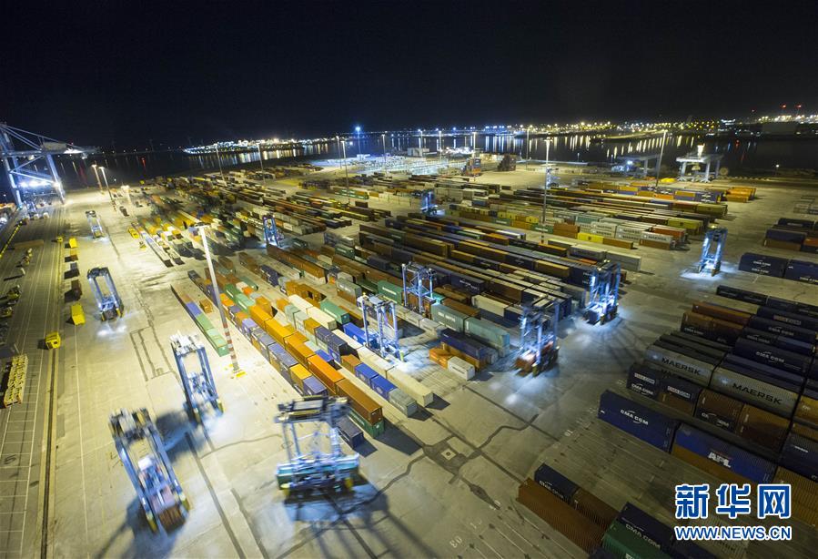 这是10月15日晚在比利时泽布吕赫港拍摄的正在进行装卸作业的集装箱码头。新华社记者 叶平凡 摄