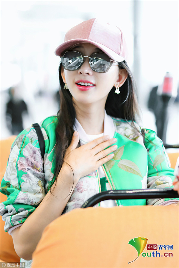 2018年10月16日,上海,林志玲亮相机场,她身穿绿色印花外套搭配粉色鸭舌帽十分清新靓丽,乖乖坐小车抿嘴甜笑比V嘟嘴频卖萌。