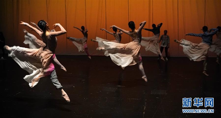 10月15日,演员在广州大剧院排演舞蹈《彩云追月》。 由中国文学艺术界联合会、中国舞蹈家协会等主办的第十一届中国舞蹈“荷花奖”当代舞、现代舞评奖活动10月15日至17日在广州举行。“台上一分钟,台下十年功”,所有参评节目,都要经过排练、走台(含定点、合光)、联排(不带妆)、彩排(带妆)等流程,方能最终与观众见面。每一个舞蹈动作,都是演员长久辛劳的凝聚。 新华社记者 才扬 摄