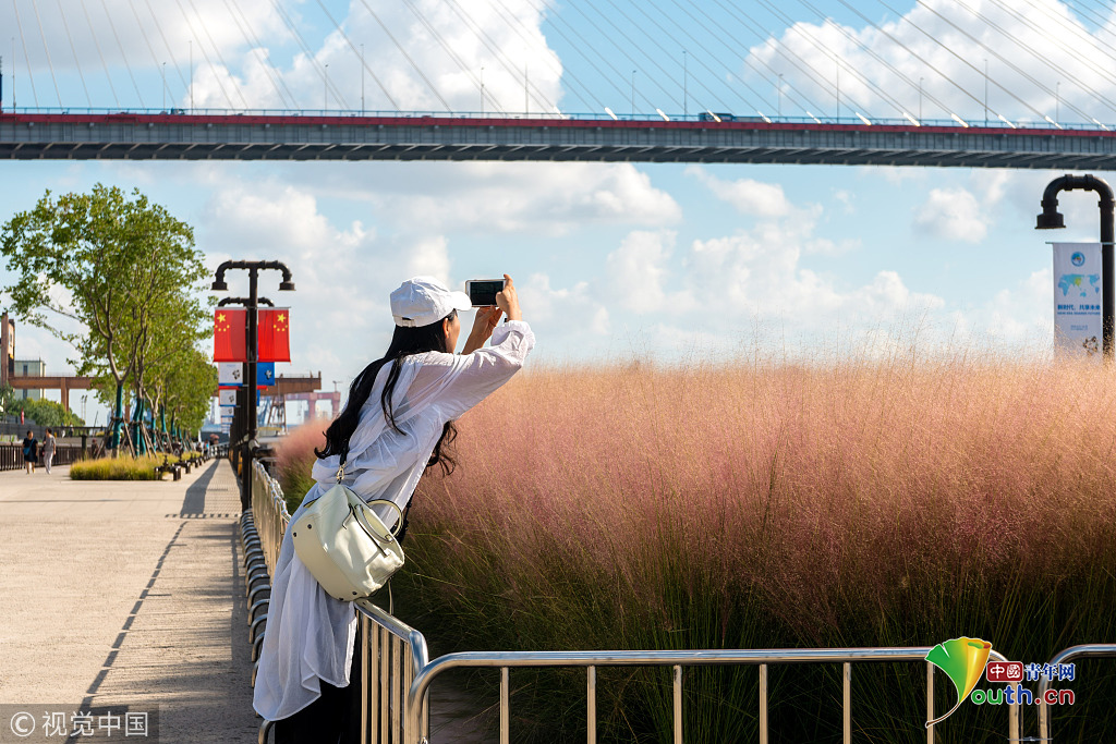 上海杨浦滨江粉黛乱子草成片盛开 美不胜收