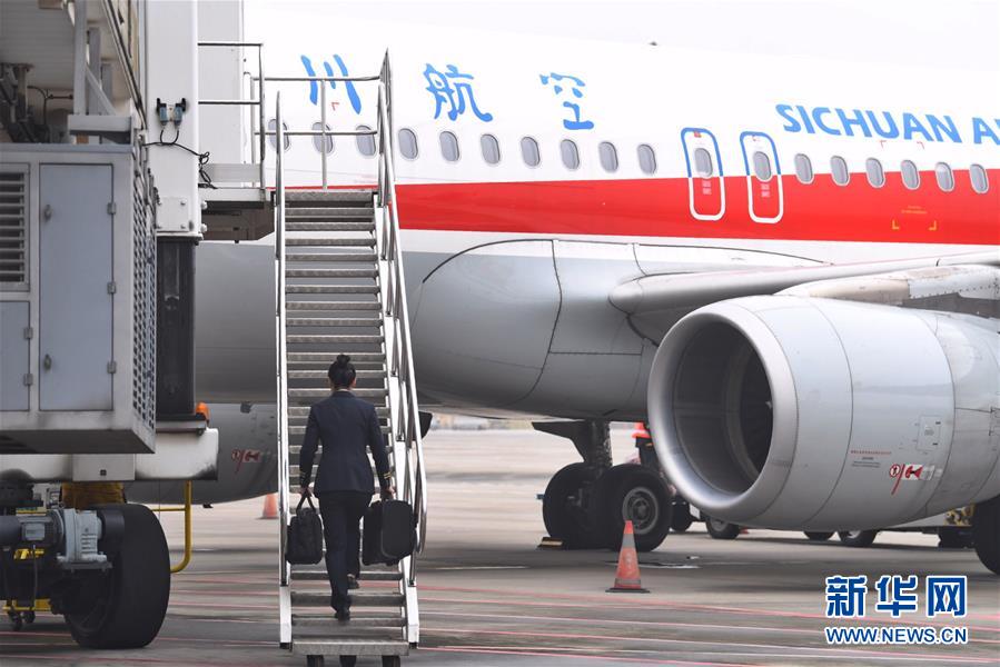 10月16日,汤春燕登机,准备开始工作。 新华社记者王全超摄