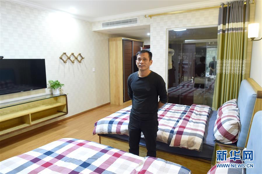 棠里坞村民宿负责人徐学德在民宿客房内(10月16日摄)。 浙江诸暨市陈宅镇棠里坞村积极盘活闲置资源,吸引社会资本参与乡村振兴。棠里坞村一处面积2000多平方米的废弃猪场,经过改造成为民宿,每到节假日客房供不应求。 新华社记者 韩传号 摄