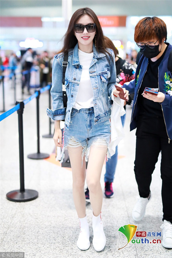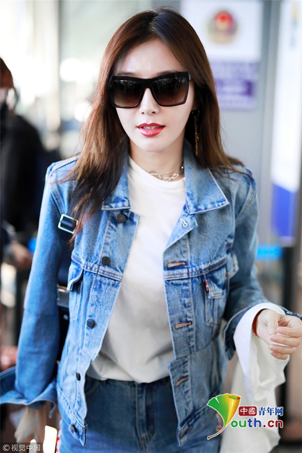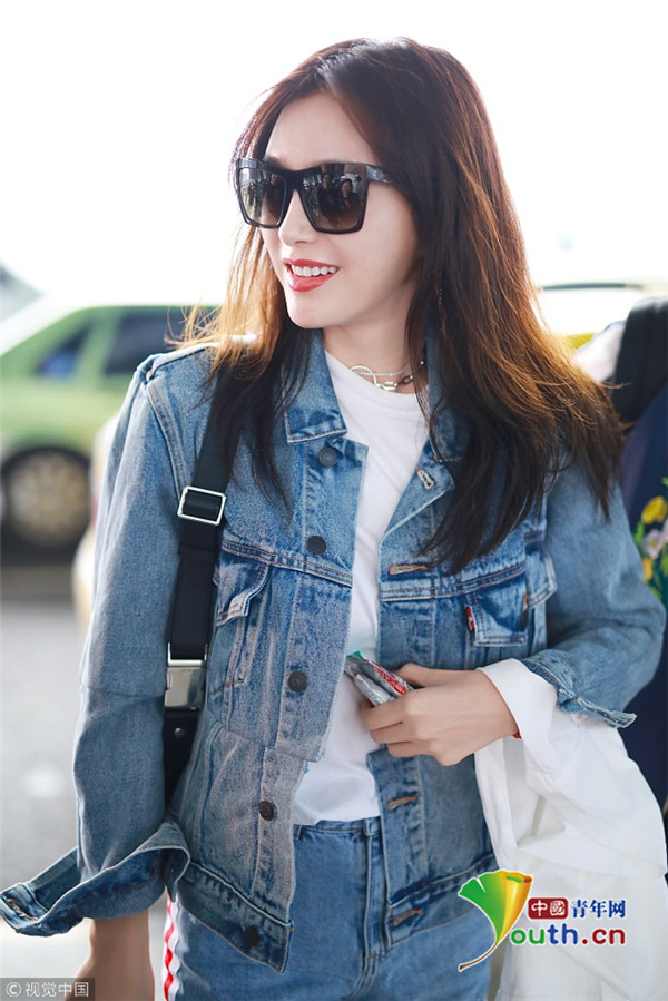 2018年10月17日,上海,秦岚现身机场。她一身牛仔LOOK露出白皙长腿,雪肤红唇美得不可方物,长发飘飘玉手撩发女神范十足。