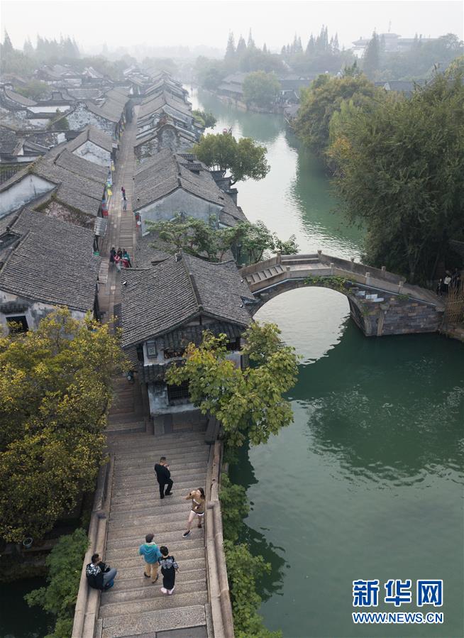 当日,浙江省桐乡著名古镇乌镇秋色轻染、薄雾如纱,水乡晓色静谧怡人。 新华社记者翁忻旸摄