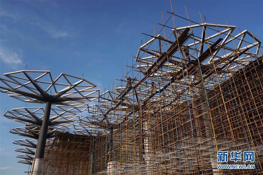 10月18日拍摄的建设中的北京世园会国际馆。新华社记者 鞠焕宗 摄