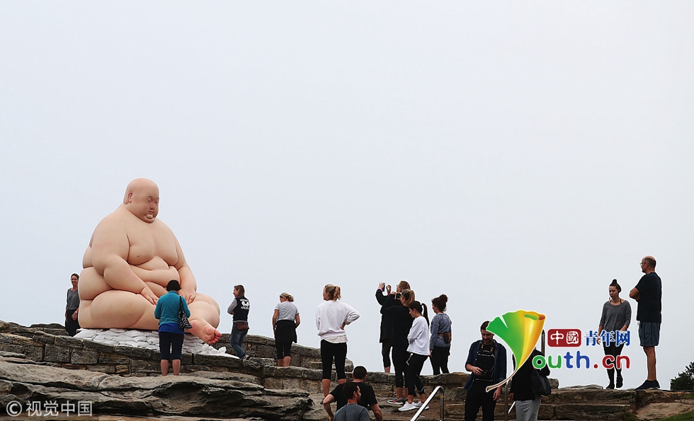 慎点!澳大利亚邦迪海滩雕塑展一幕