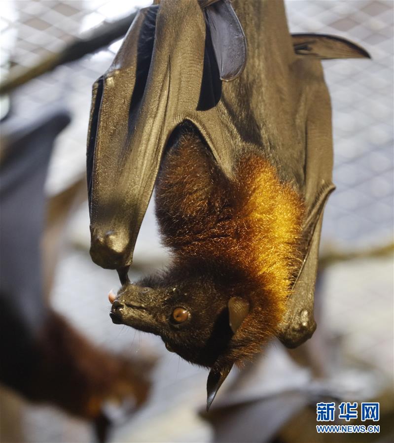 10月18日在广州长隆野生动物世界拍摄的马来大狐蝠。 当日,马来大狐蝠在广州长隆野生动物世界首次展出。马来大狐蝠体长20至25厘米,翼幅最大近两米,主要分布在印度尼西亚与马来西亚等地。 新华社记者 黄国保 摄