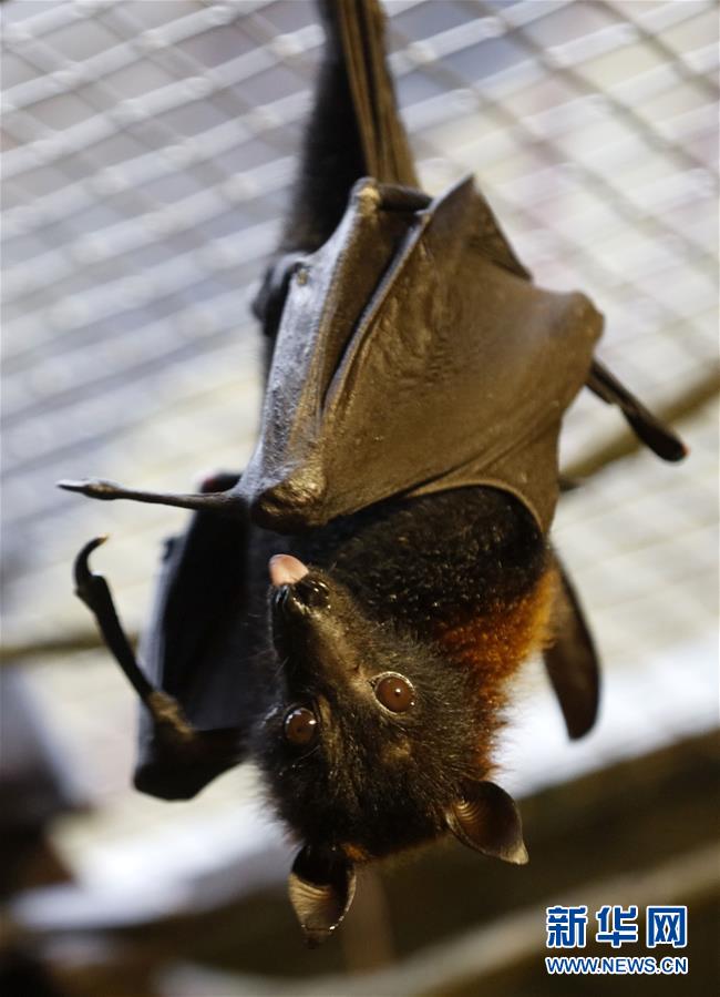 10月18日在广州长隆野生动物世界拍摄的马来大狐蝠。 当日,马来大狐蝠在广州长隆野生动物世界首次展出。马来大狐蝠体长20至25厘米,翼幅最大近两米,主要分布在印度尼西亚与马来西亚等地。 新华社记者 黄国保 摄