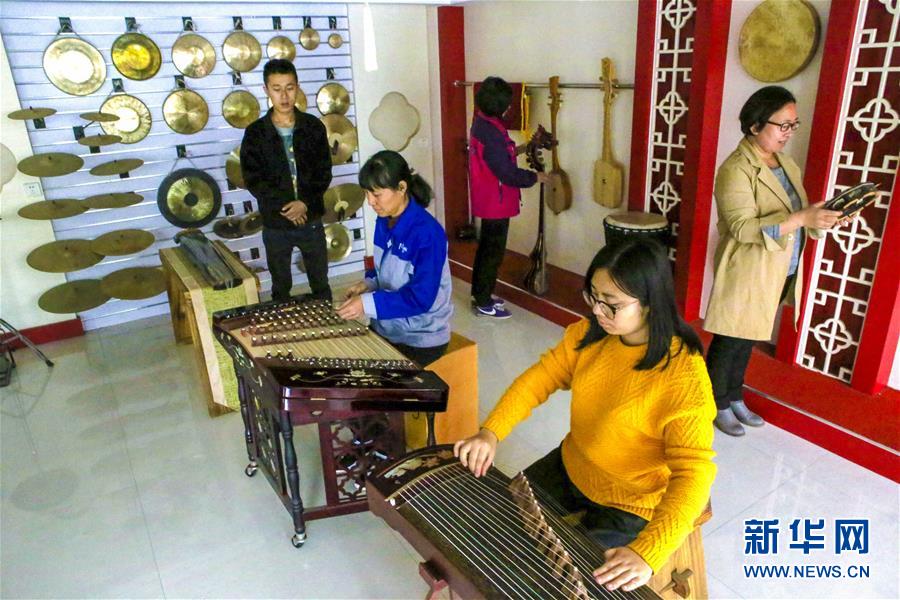 10月20日,客商在河北省饶阳县一家民族乐器厂挑选民族乐器。