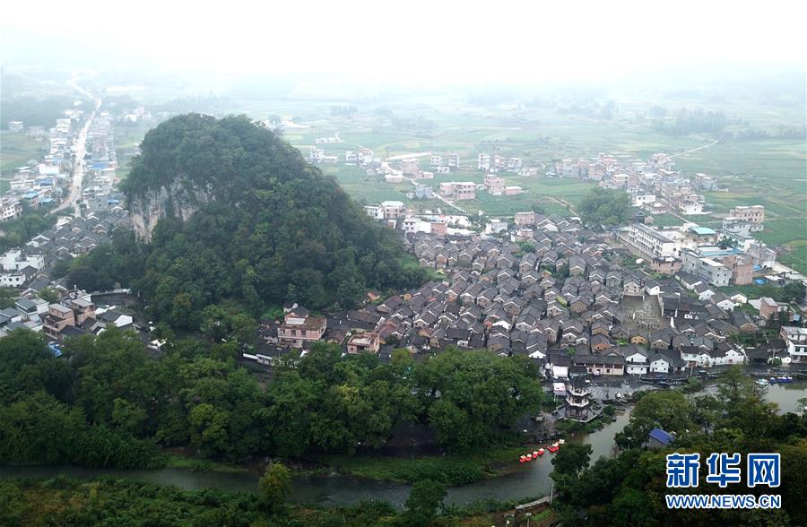 广西富川瑶族自治县朝东镇秀水村连片民居(10月19日无人机拍摄)。 新华社记者 周华 摄