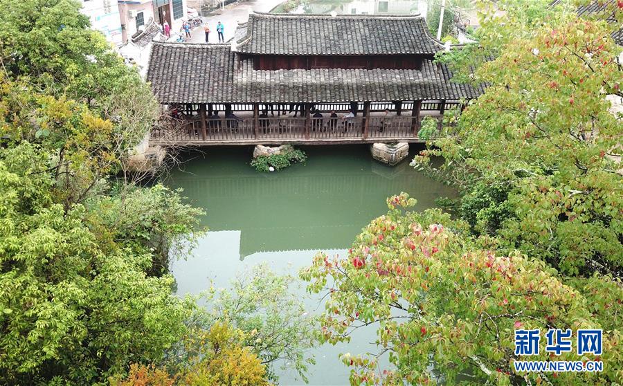 有着数百年历史的广西富川瑶族自治县朝东镇东水村风雨桥(10月19日无人机拍摄)。 新华社记者 周华 摄