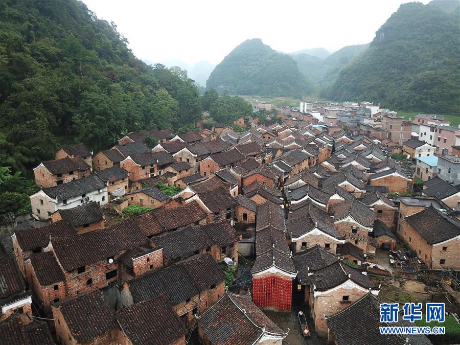 广西富川瑶族自治县朝东镇岔山村连片古民居群(10月19日无人机拍摄)。 新华社记者 周华 摄
