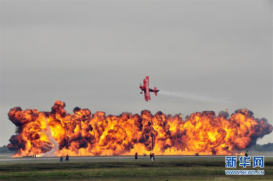 10月20日,在美国休斯敦,特技飞行员肖恩·塔克驾驶飞机进行飞行表演。 新华社记者刘立伟摄