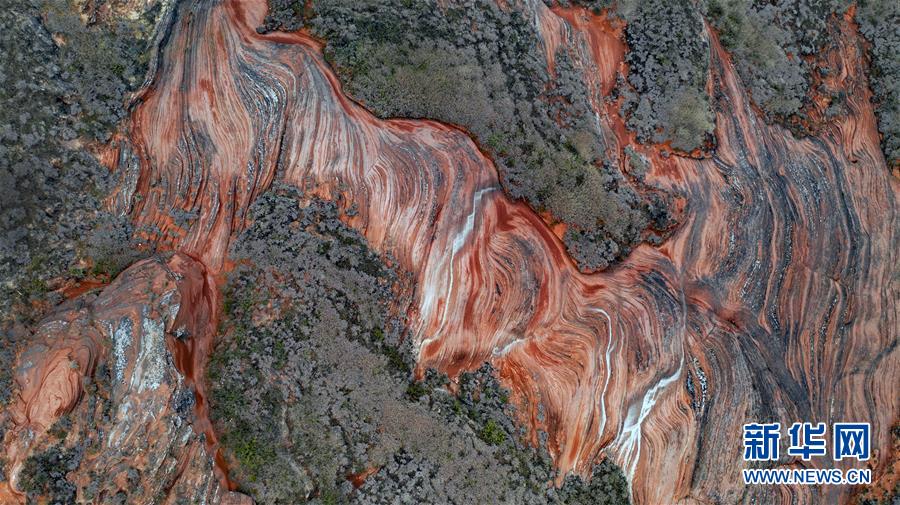 10月21日无人机拍摄的王家湾丹霞地貌。 新华社记者陶明摄