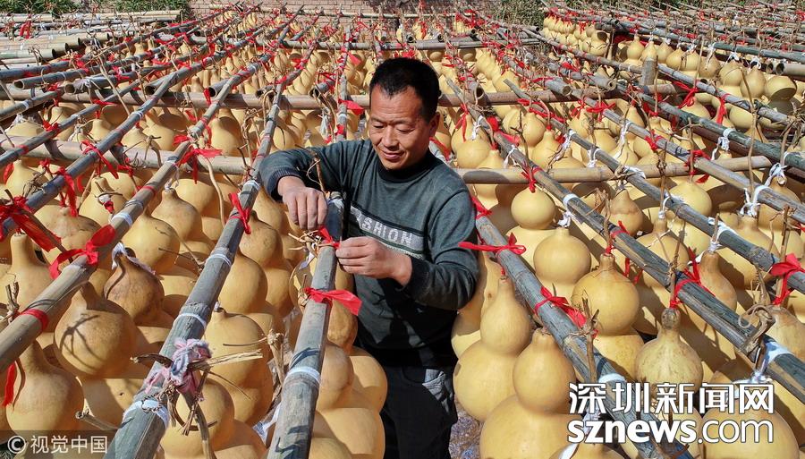 深圳新闻网讯 今年43岁的赵双慧是山西省运城市闻喜县礼元镇阜底村农民,依托种植技术和地域优势,积极发展葫芦特色农业,实现创业增收。今年他种植的20多亩葫芦喜获丰收,成为增收的一大特色产业。