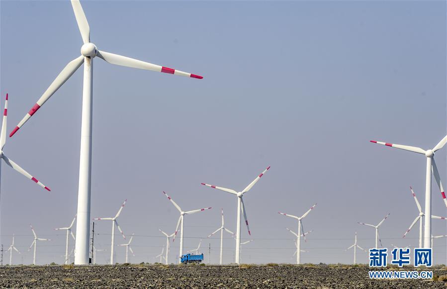 在新疆乌鲁木齐达坂城风力发电场,一辆汽车行驶在“风车森林”里(2018年9月18日摄)。今年以来,新疆稳步推进新能源参与“疆电外送”、扩大与燃煤自备电厂调峰替代交易等多种电力交易方式,着力破解“绿色电力”上网难题,新能源发电量同比增加近13个百分点,而弃电量和弃电比实现“双降”,绿色发展理念进一步落实。新疆是我国重要的能源供应和储备基地,风能、太阳能储量丰富。近年来,新疆新能源装机总量突破2700万千瓦,规模和占比均居全国前列。新华社记者 赵戈 摄