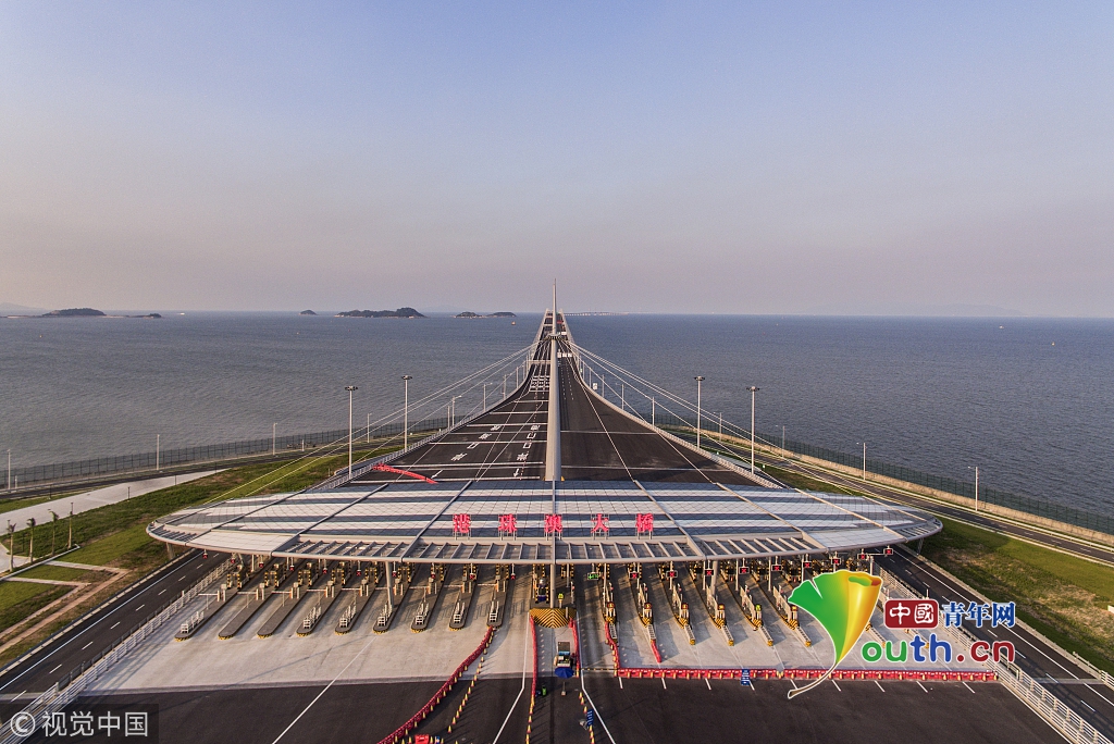 2018年5月23日,广东珠海,珠澳口岸人工岛上的港珠澳大桥收费站。