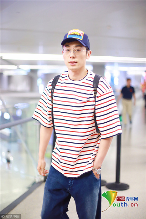 2018年10月22日,上海,朱亚文现身机场。他头戴棒球帽,身穿条纹短袖搭配休闲哈伦裤显得年轻又时尚,立减十岁大叔变潮男,单手插袋抿嘴略显痞气。