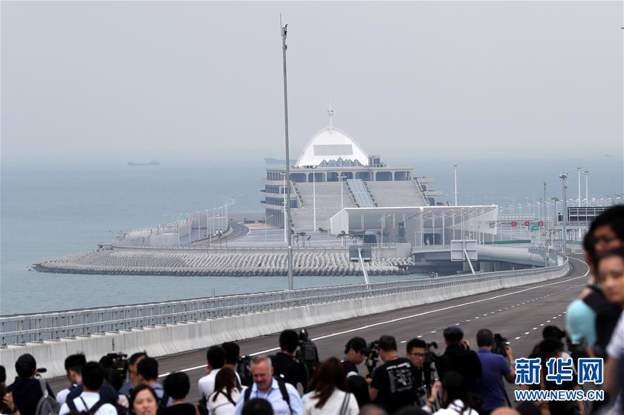 10月19日,媒体记者在港珠澳大桥香港连接路部分参观。 港珠澳大桥开通在即。 新华社记者 李钢 摄