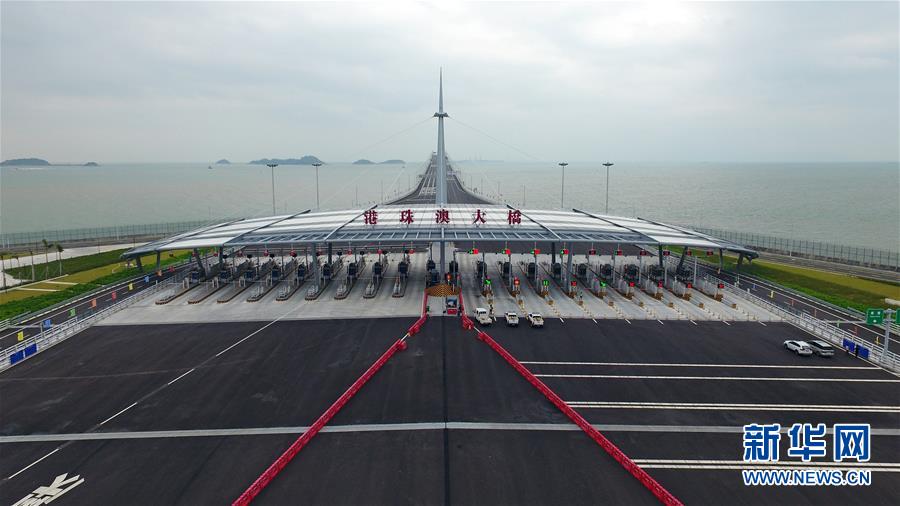 这是港珠澳大桥收费广场(10月20日无人机拍摄)。