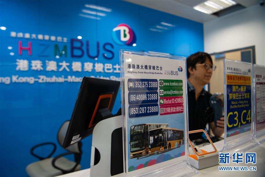位于港珠澳大桥澳门边检大楼的穿梭巴士售票处(10月19日摄)。 港珠澳大桥将于本月24日通车运营,成为连接香港、澳门的新通道。记者19日驱车前往澳门口岸实地采访,了解口岸内部设置和准备工作情况。 新华社记者 张金加 摄
