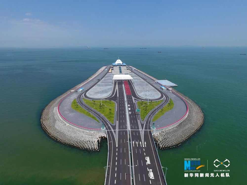图为新华网无人机队航拍港珠澳大桥。新华网 伍嘉炜 摄