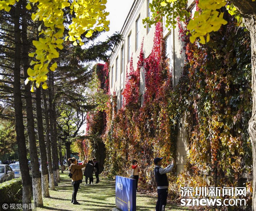 最美校园 !大学内建筑被爬山虎包围 满墙火红美如画