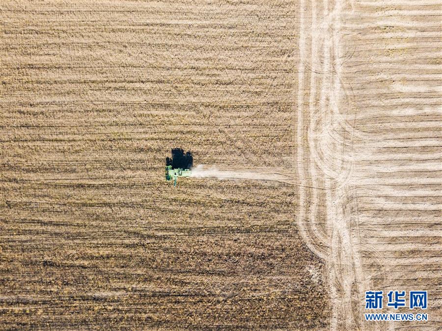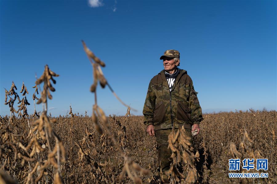 村民在俄罗斯犹太自治州比罗比詹市附近的大豆农场里劳作(10月19日摄)。新华社记者张若玄摄
