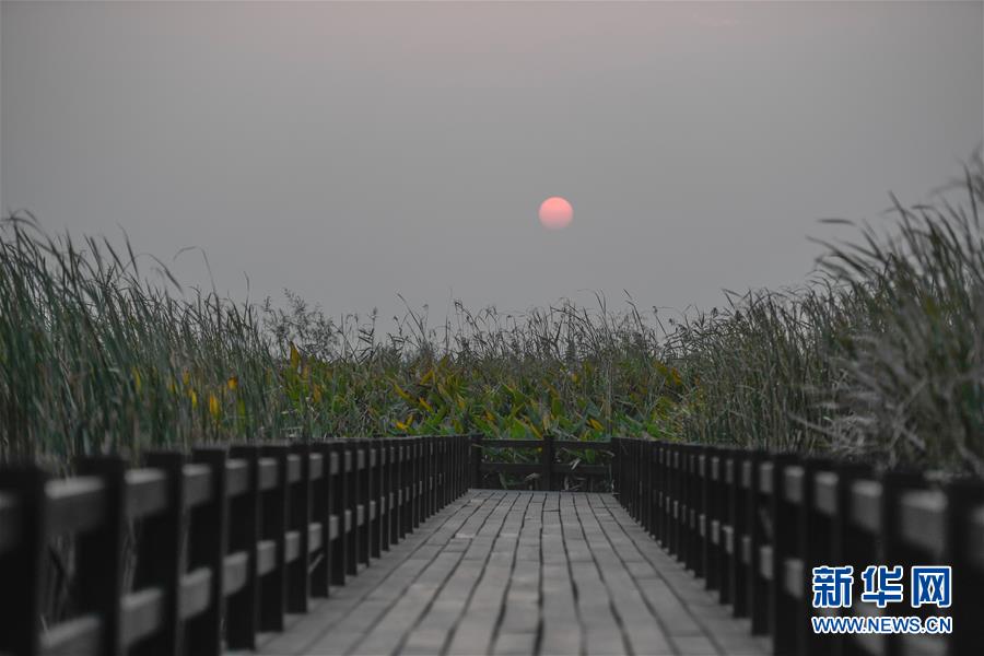 杭州湾国家湿地公园一景(10月24日摄)。 时值深秋,位于浙江宁波的杭州湾国家湿地公园在落日余晖下呈现出一幅美丽的画卷。 新华社记者 黄宗治 摄