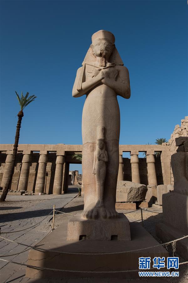 这是10月23日在埃及卢克索拍摄的卡纳克神庙内的石像。新华社记者 孟涛 摄