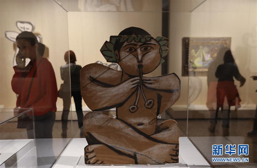 这是10月24日在意大利米兰“毕加索·变形记”展上拍摄的毕加索作品《坐着的音乐家》。 新华社记者程婷婷摄