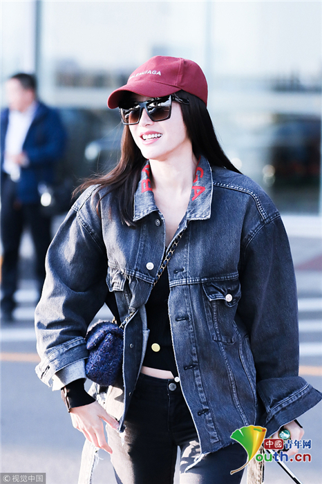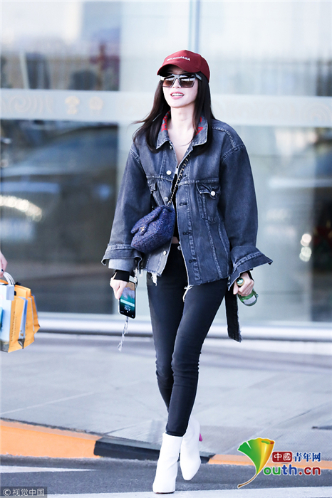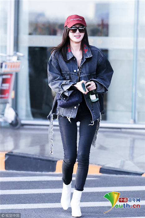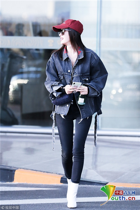 2018年10月24日,北京,“富察皇后”秦岚现身机场。她头戴小红帽,身穿黑色紧身裤显美腿笔直修长,上身穿着牛仔外套青春逼人,边走边甜笑玩“撩发杀”,靓丽吸睛。