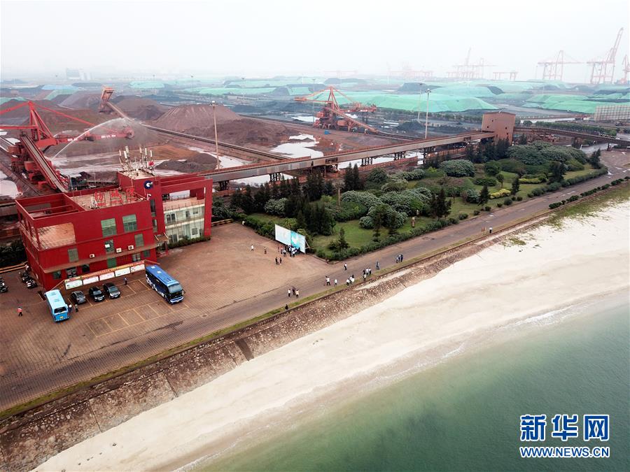 这是10月24日无人机拍摄的广西防城港码头。目前防城港已建成一批铁矿石、煤炭、硫磺、粮食、化肥、液体化工等货种的大型专用仓储和装卸船系统。 新华社记者 魏海 摄
