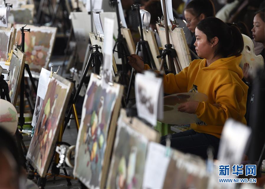 10月24日,考生在南京青蓝画室教学基地考点参加色彩科目模拟考试。 新华社记者孙参摄