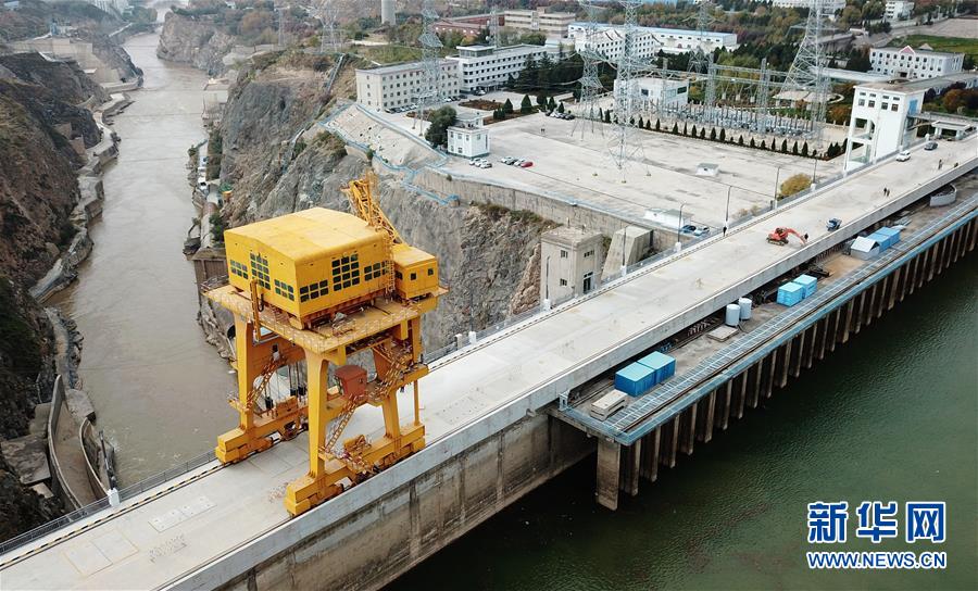 这是10月24日无人机拍摄的刘家峡水库大坝。 新华社记者 陈斌 摄