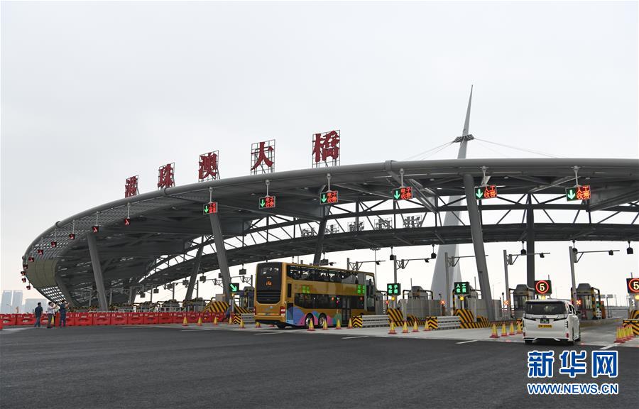 10月24日,从珠海开往香港的首批车辆驶上港珠澳大桥。当日,港珠澳大桥正式通车。 新华社记者梁旭摄