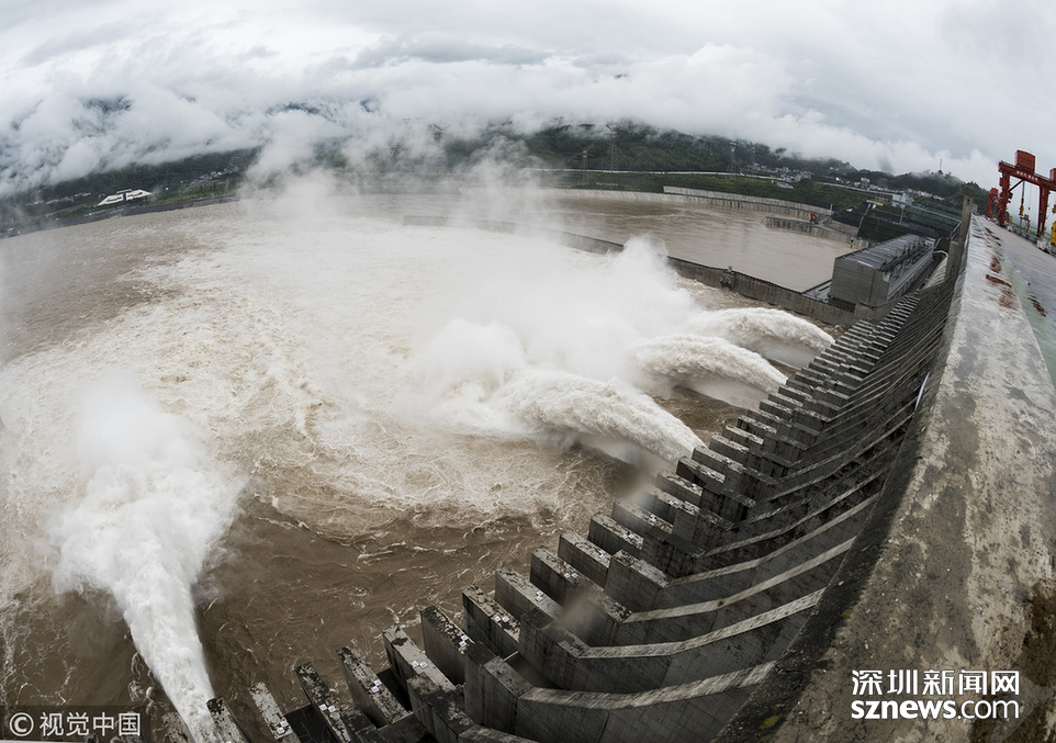 深圳新闻网讯 2018年7月5日,三峡大坝今年首次开闸泄洪。当天,三峡大坝开启5个泄洪孔下泄洪水,至中午12点左右减至2个。