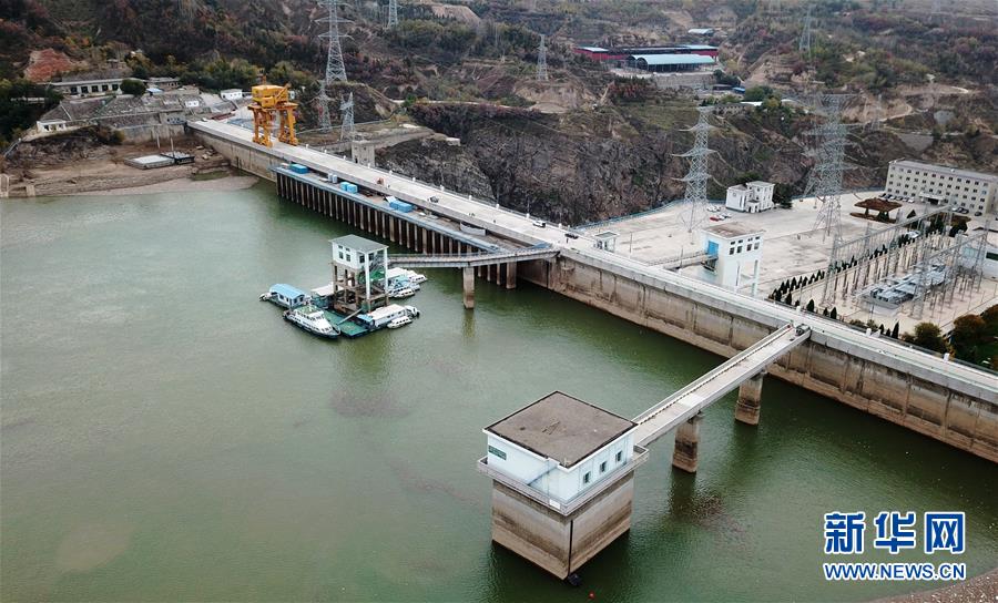 这是10月24日无人机拍摄的刘家峡水库库区和水库大坝。  新华社记者 陈斌 摄