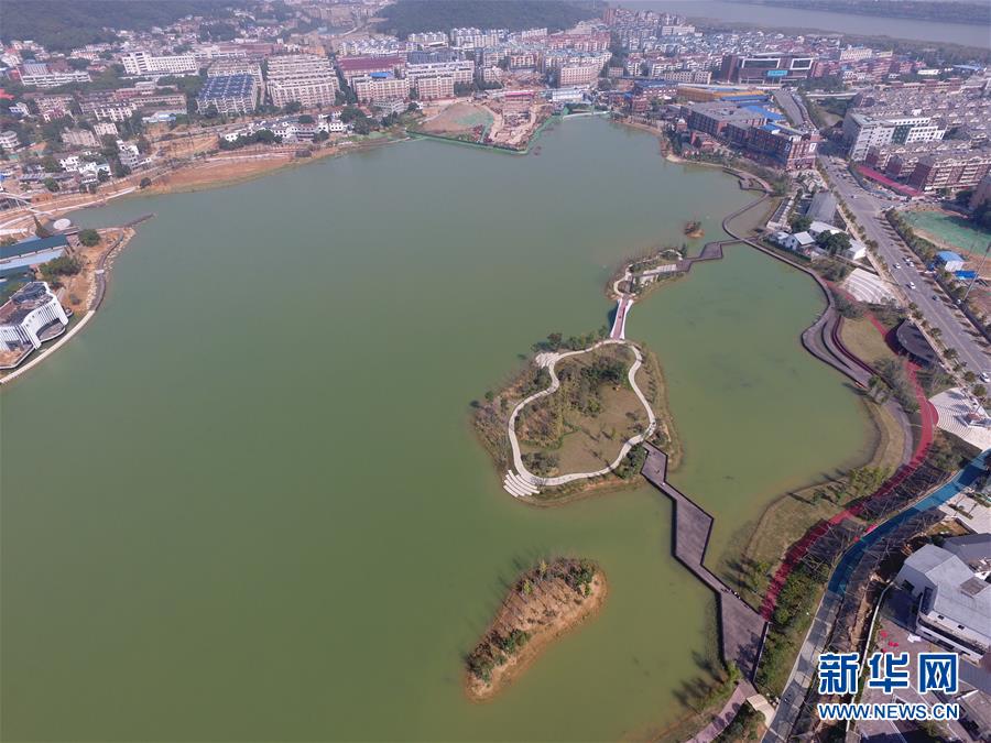 空中俯瞰长沙后湖全景(10月29日无人机拍摄)。 近日,湖南长沙后湖水环境综合整治工程全面完工,沿湖生态环境旧貌换新颜,成为市民游客休闲散步的好去处。 新华社记者 龙弘涛 摄