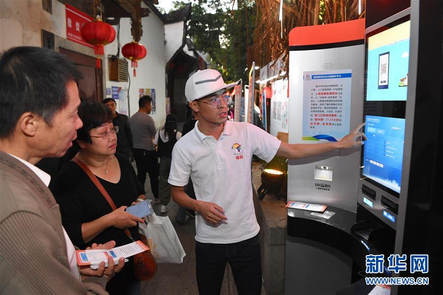 10月29日,工作人员在向市民介绍福州智慧社区自助服务平台。 10月28日至30日,由福州市政府联合支付宝主办的首届天下码商大会在福建福州举行。 新华社记者 姜克红 摄